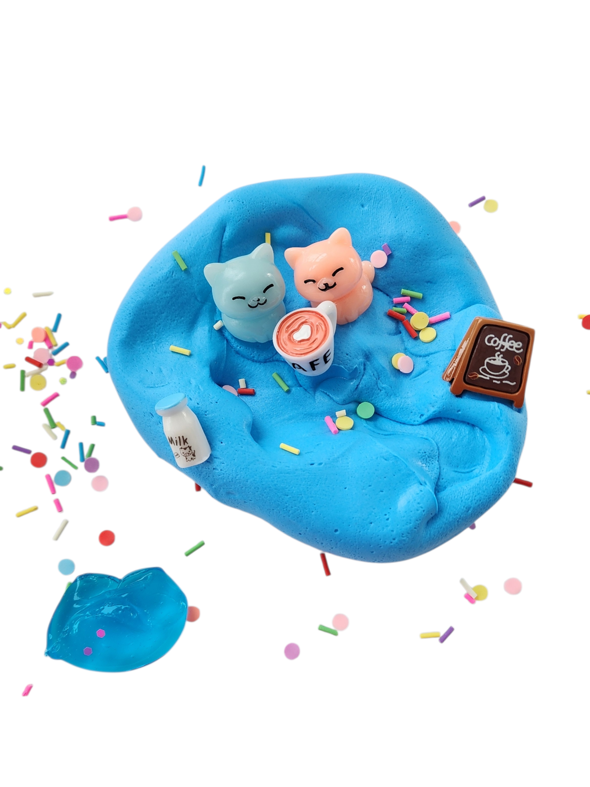 Cat Cafe Slime Bucket scented slime dough. Perfect sensory and imagination slime. Taking slime to a whole new level. Our slime dough is modable and way less stickier than traditional slimes. It is so soft and smooth. The charms with slime make this playset fun and sensory based.