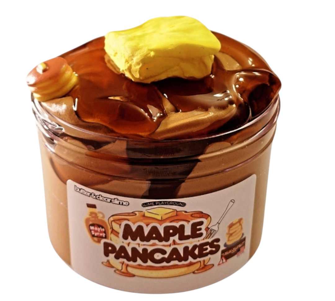 Maple Pancakes slime, scented and oh so smooth. Comes with 8 oz butter slime and 2 oz maple scented clear slime.