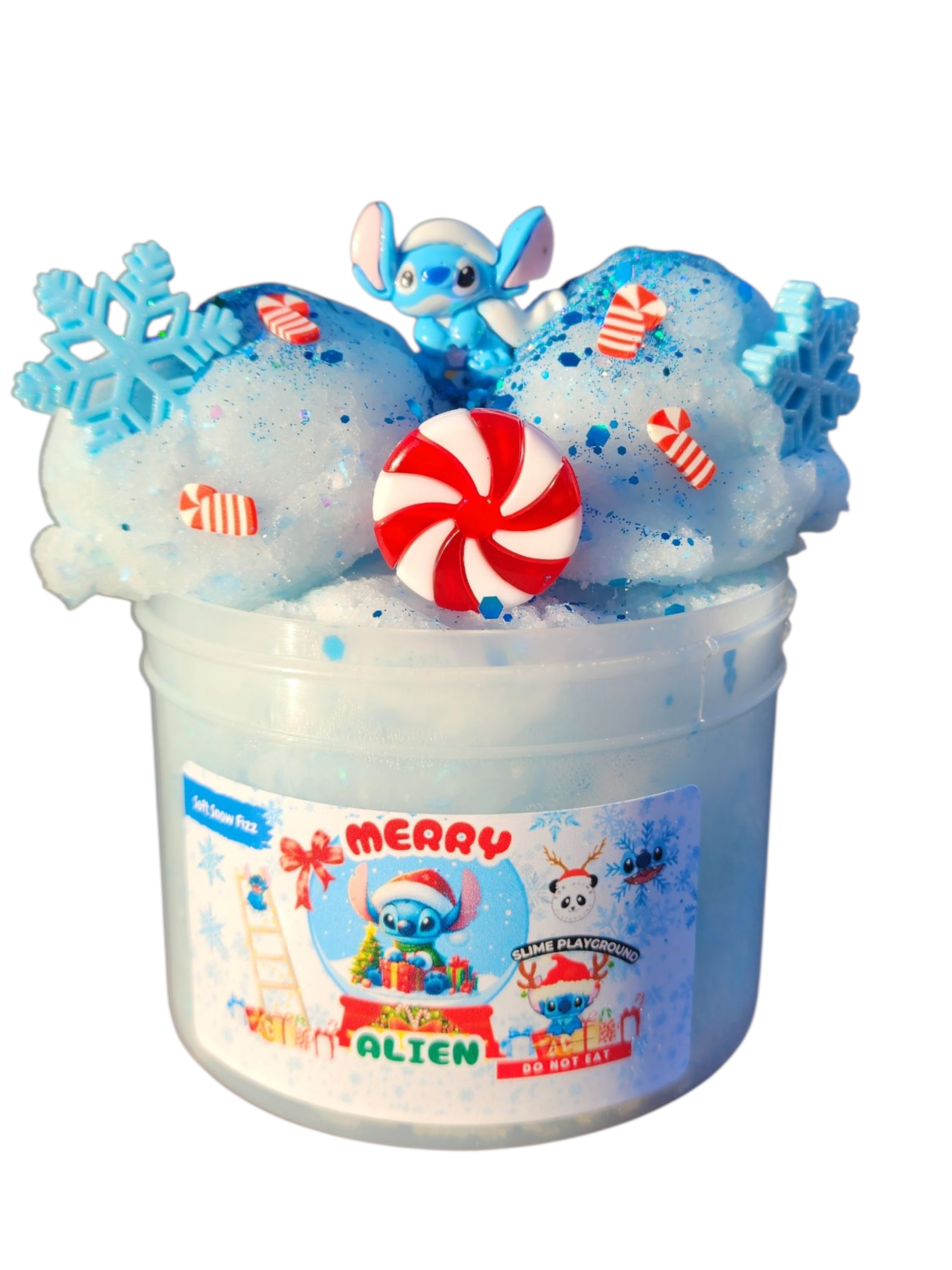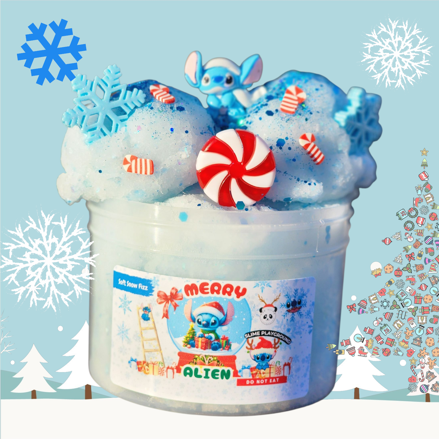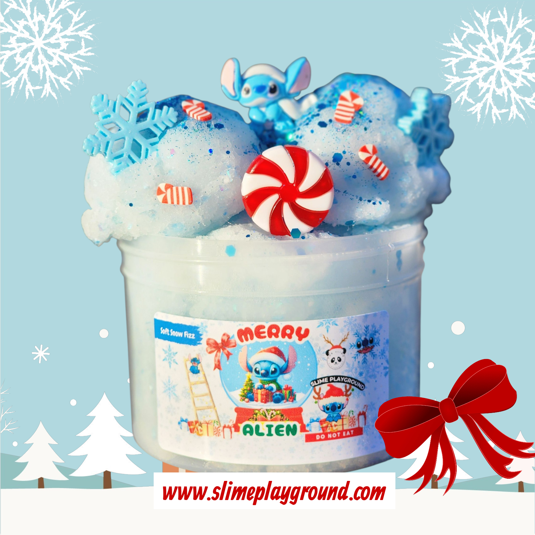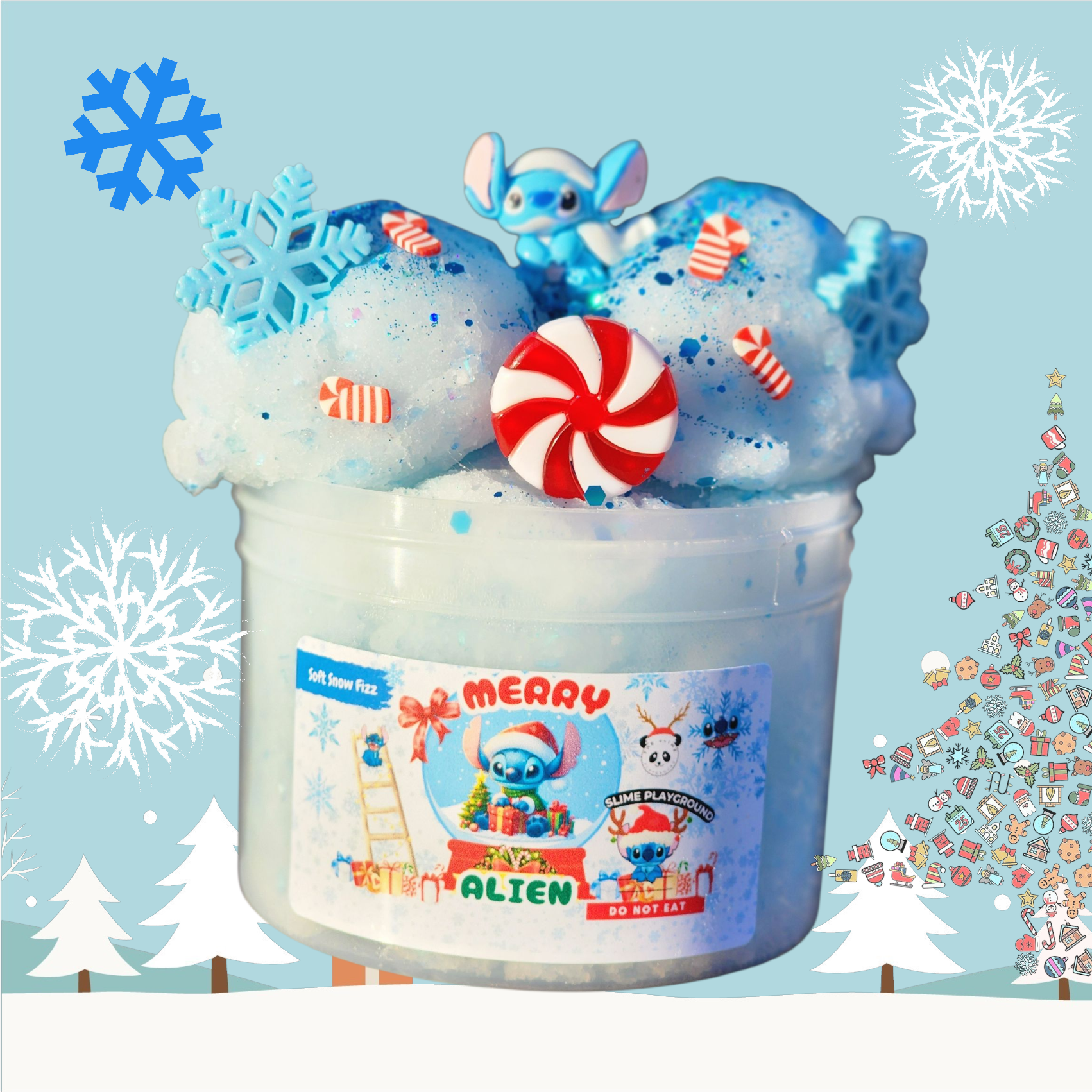 Blue Alien Soft Snow Fizz slime, the slime is lightly scented and smells amazing like blue berry. Comes with charms to add-in.