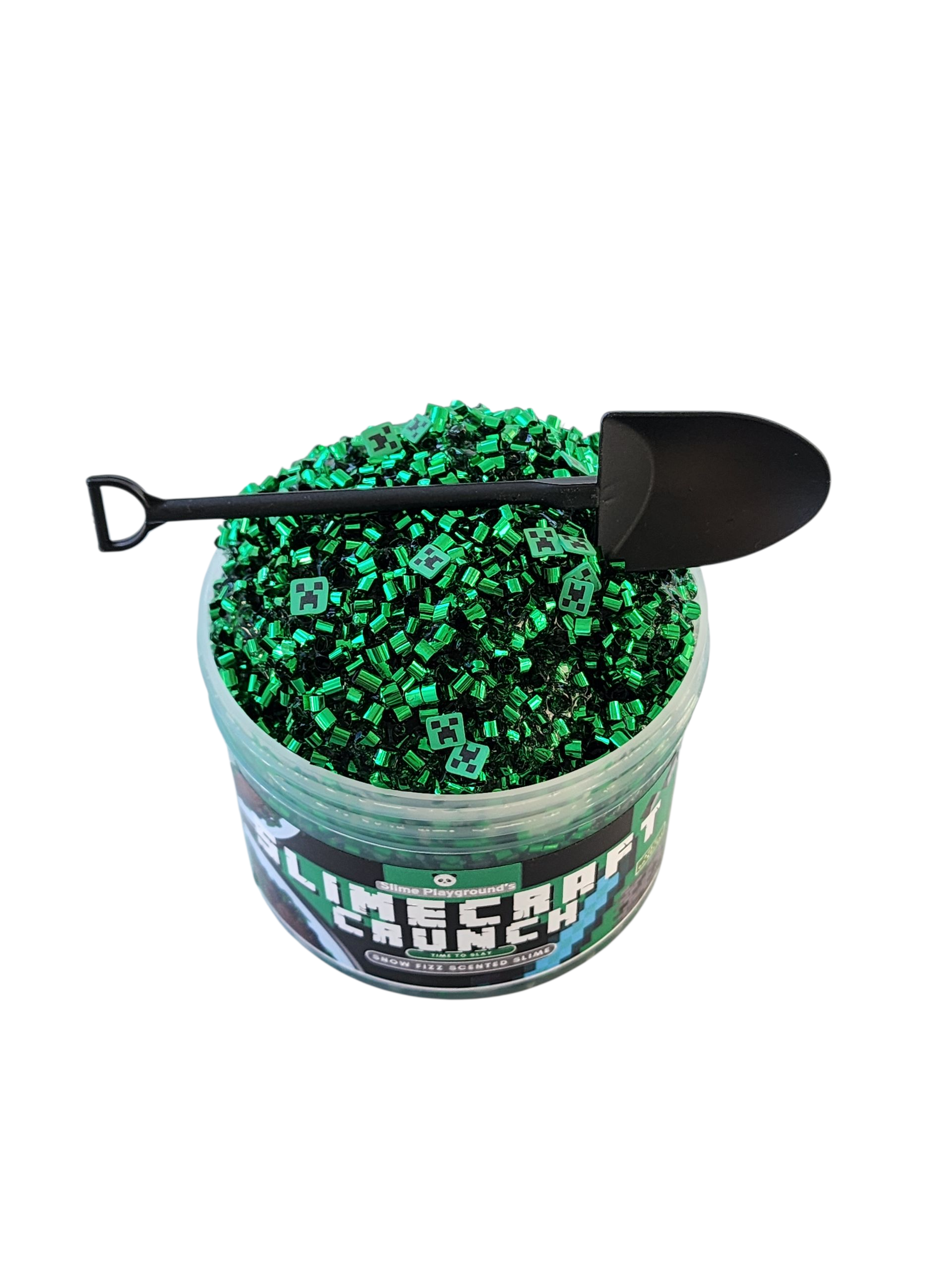 Slimecraft Creeper Bingsu/Crunch Slime 8oz. Comes with mini creepers. No scent. Stretches with slow pulls.