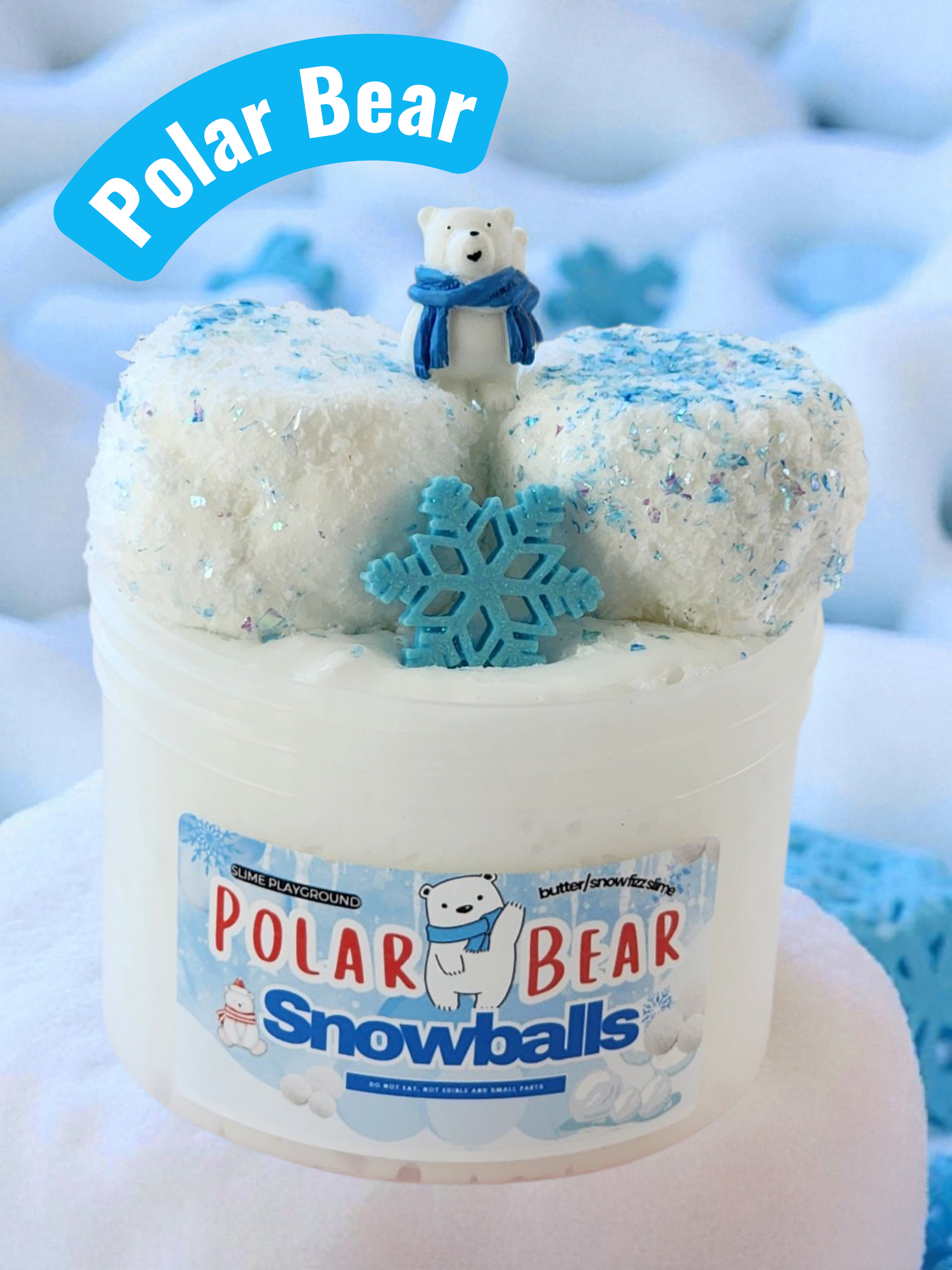Polar Bear Snowballs Butter Snow Fizz Slime. Comes with adorable charms.