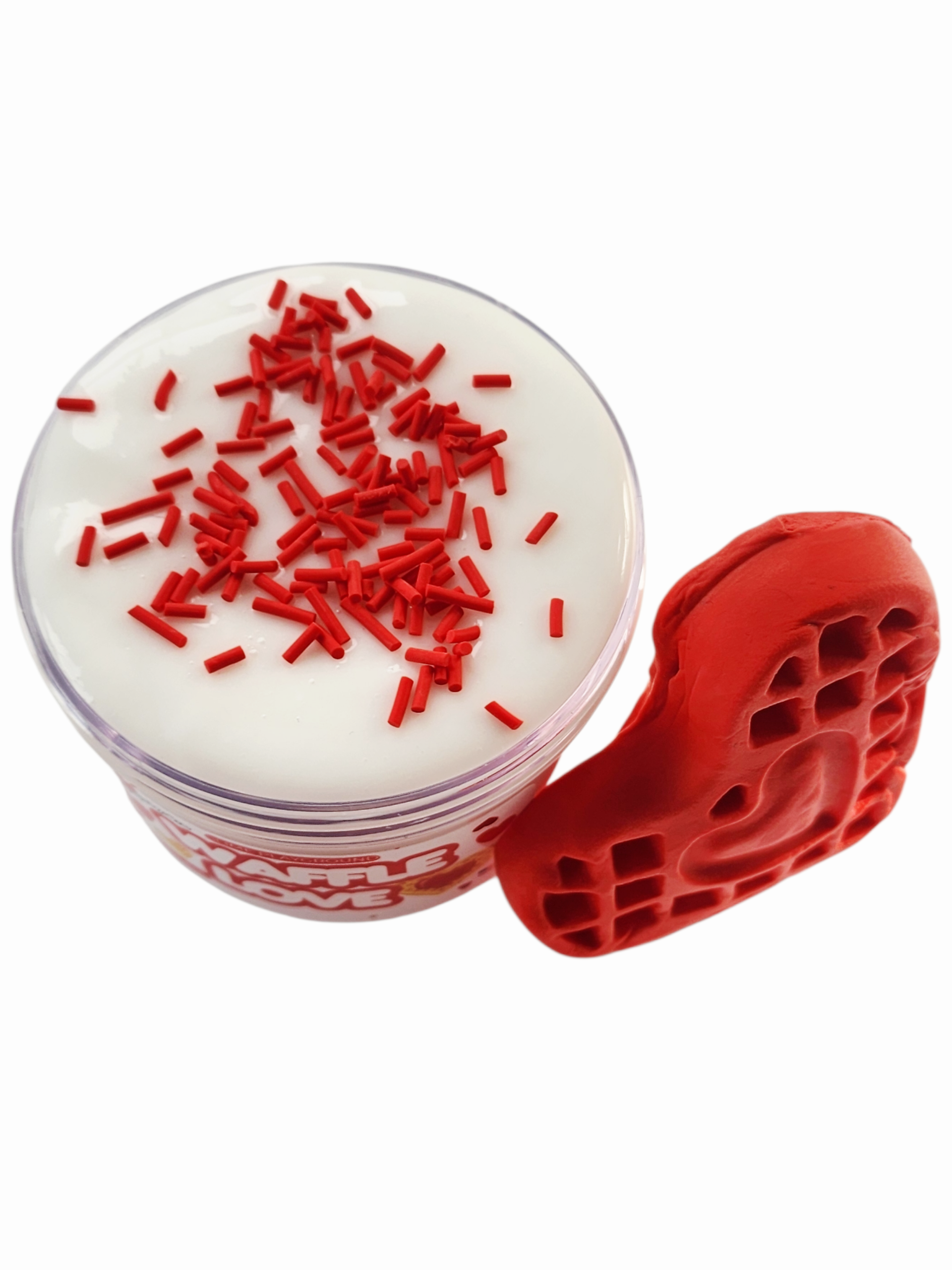 Waffle Love Glossy + Clay Slime, the slime is cherry scented.